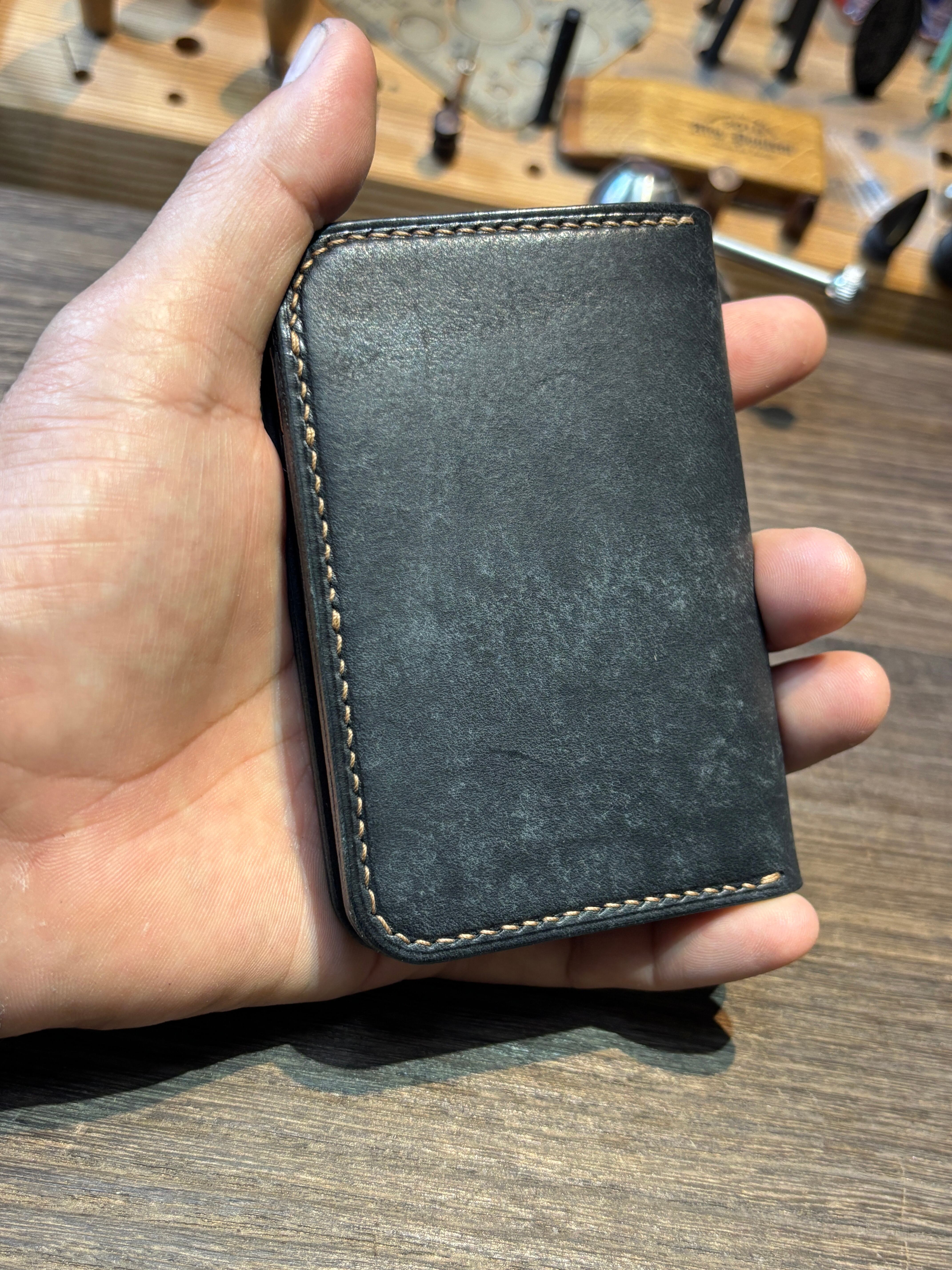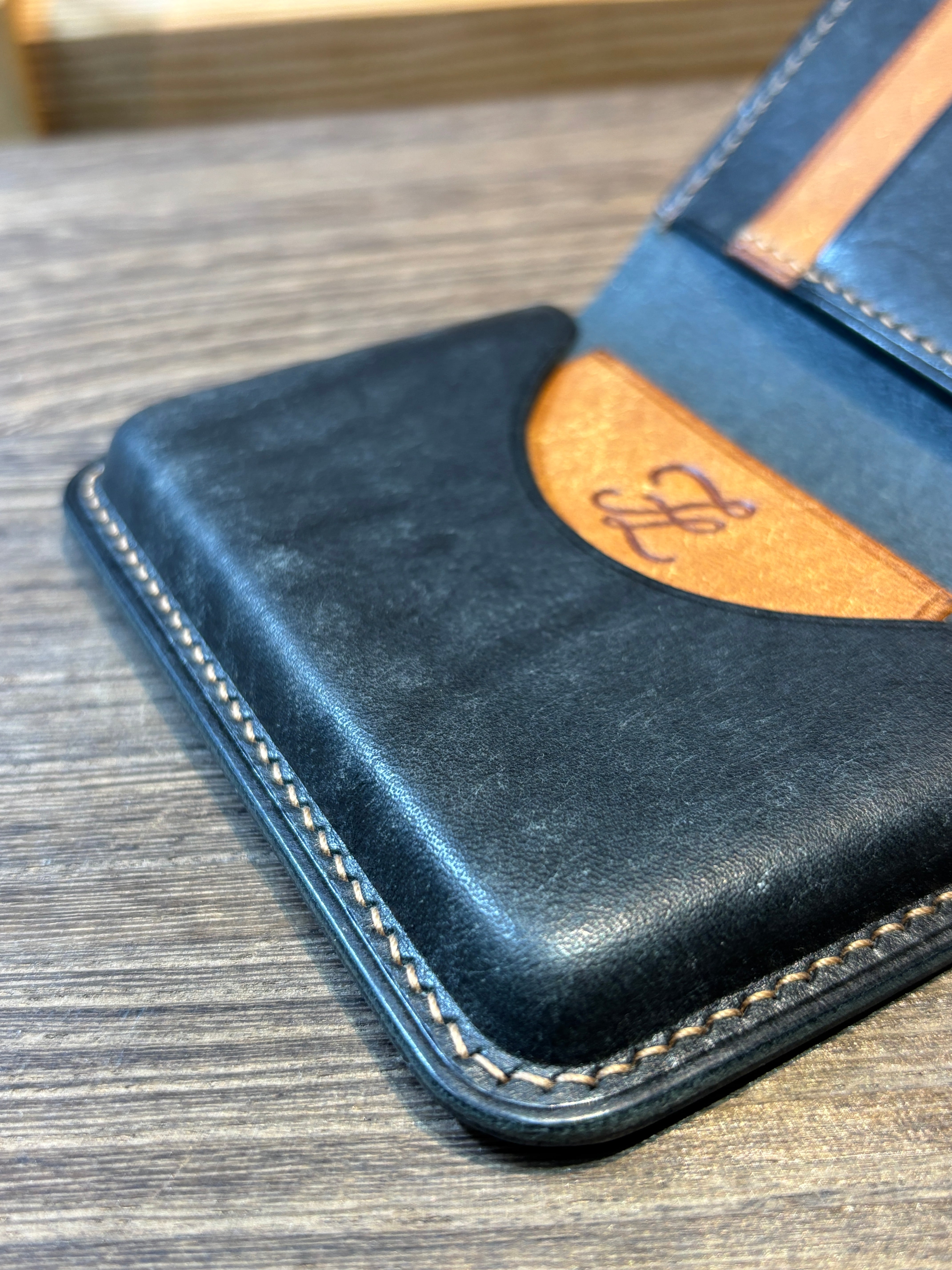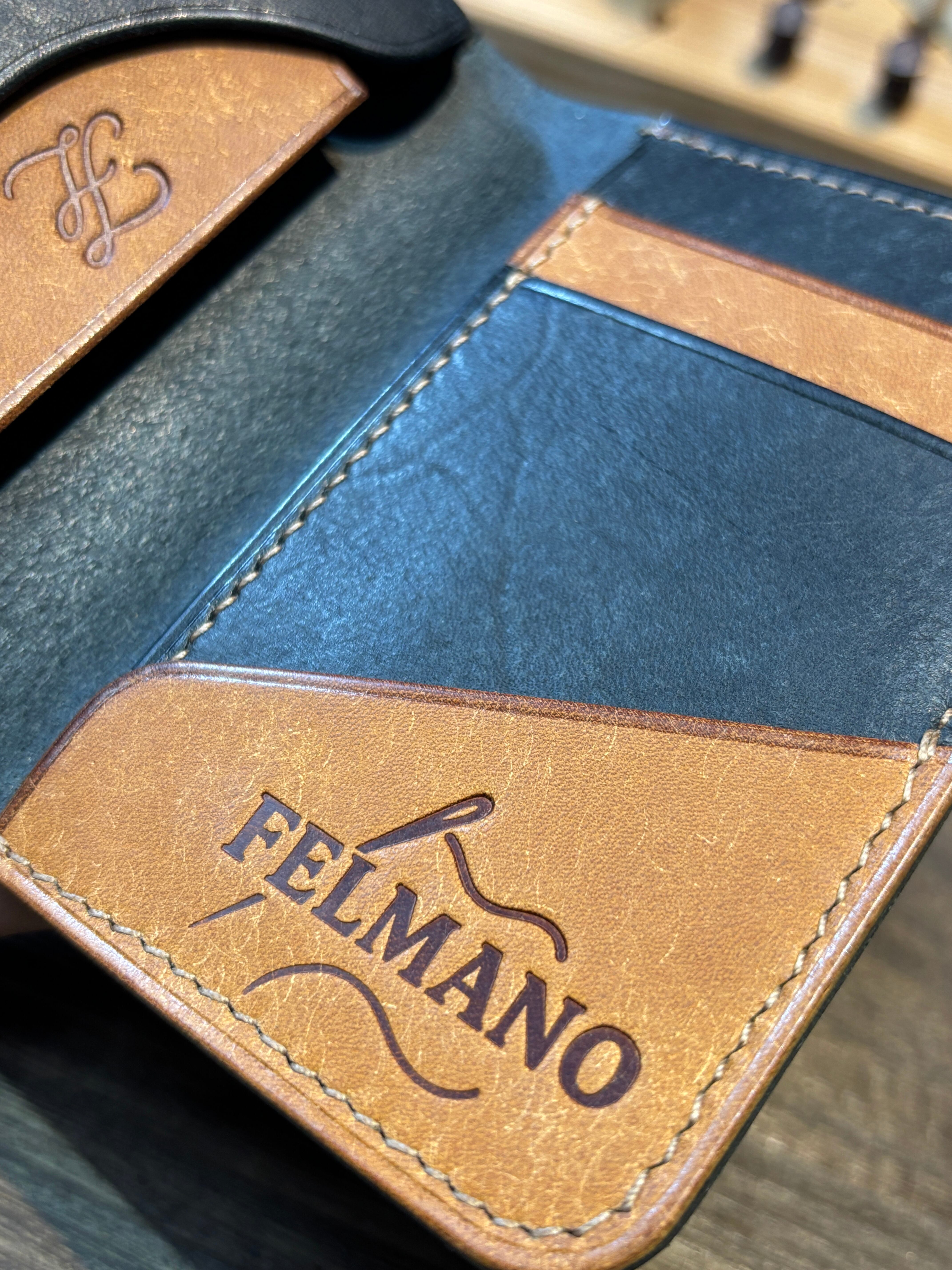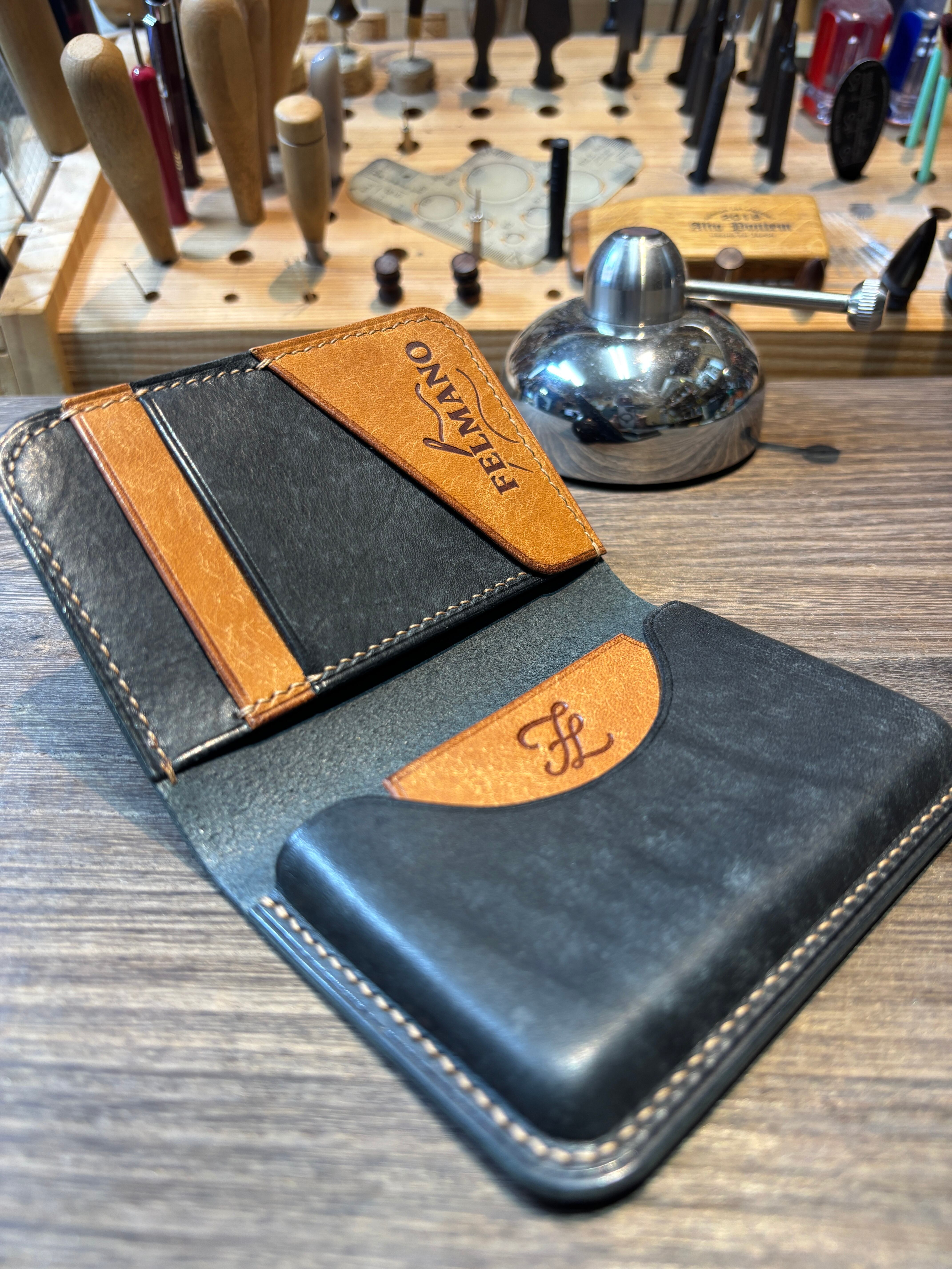 シックな雰囲気のMAYAのnero(黒)をベースに、同じく高級イタリアンレザー、プエブロのcognacを差し色としてチョイスしてみました。