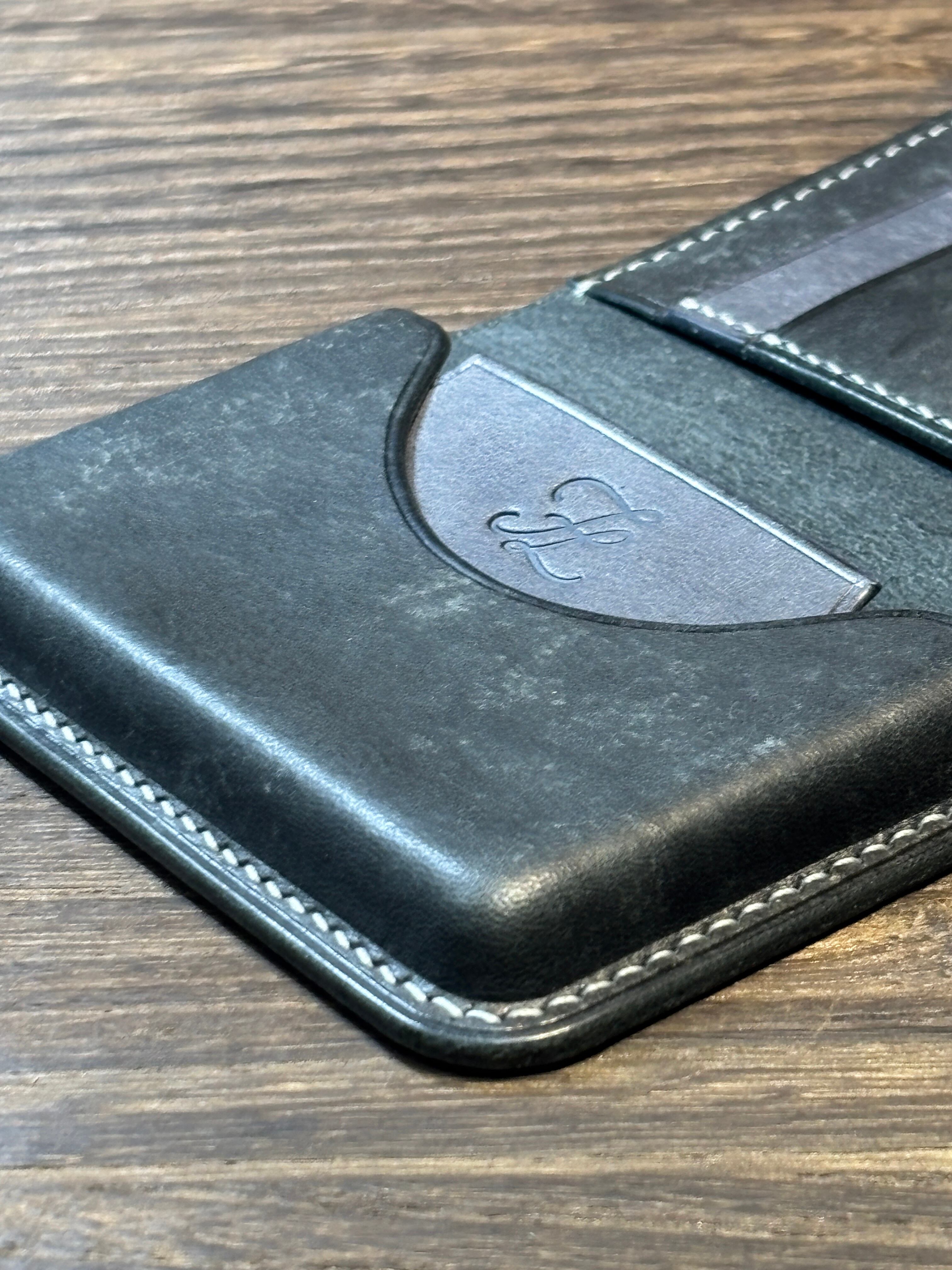 イタリアンレザーならではのしっとりとした手触りと、滑らかな曲面は非常に相性が良く使い込むほどに手に馴染んでいくことでしょう。