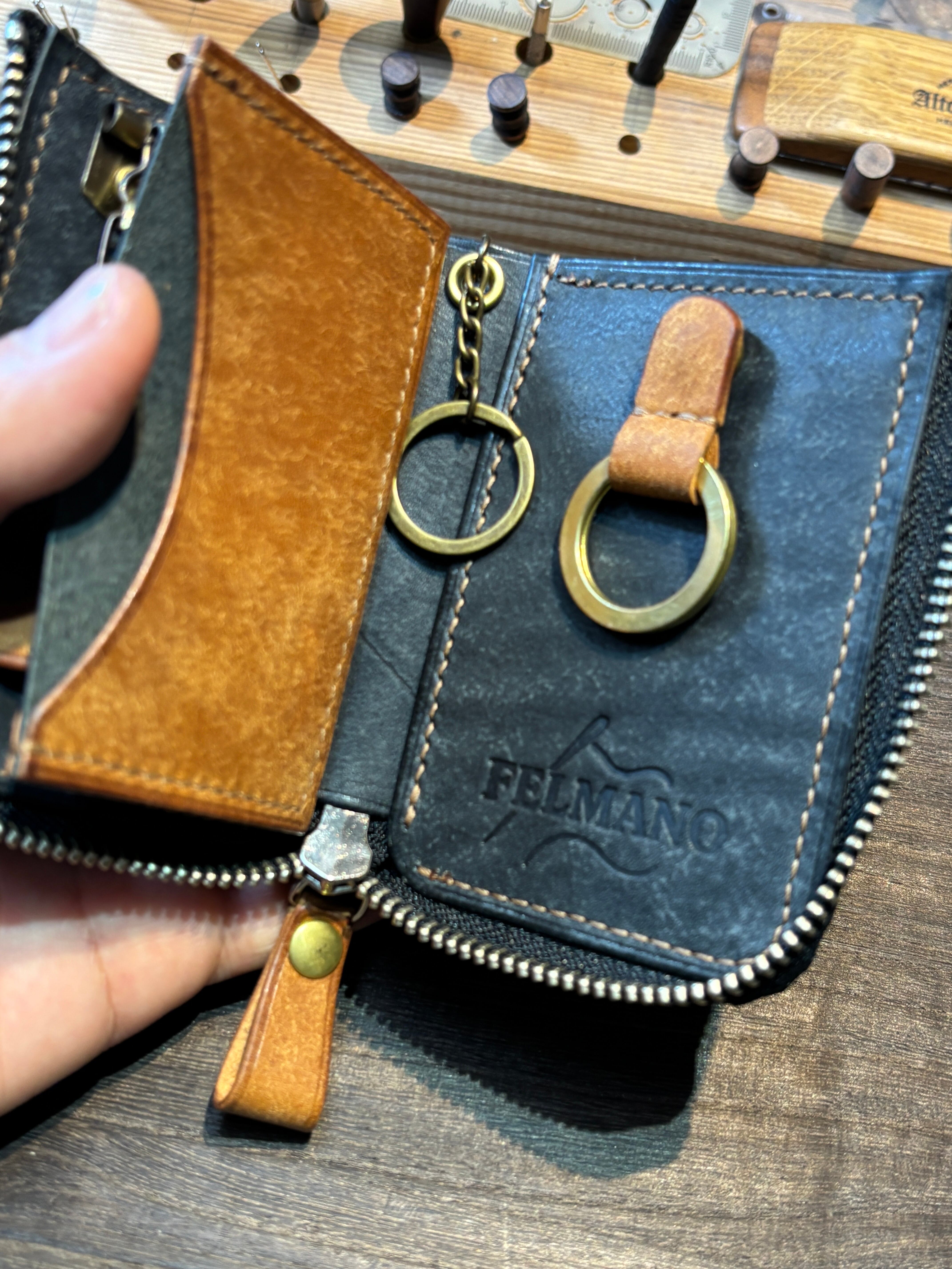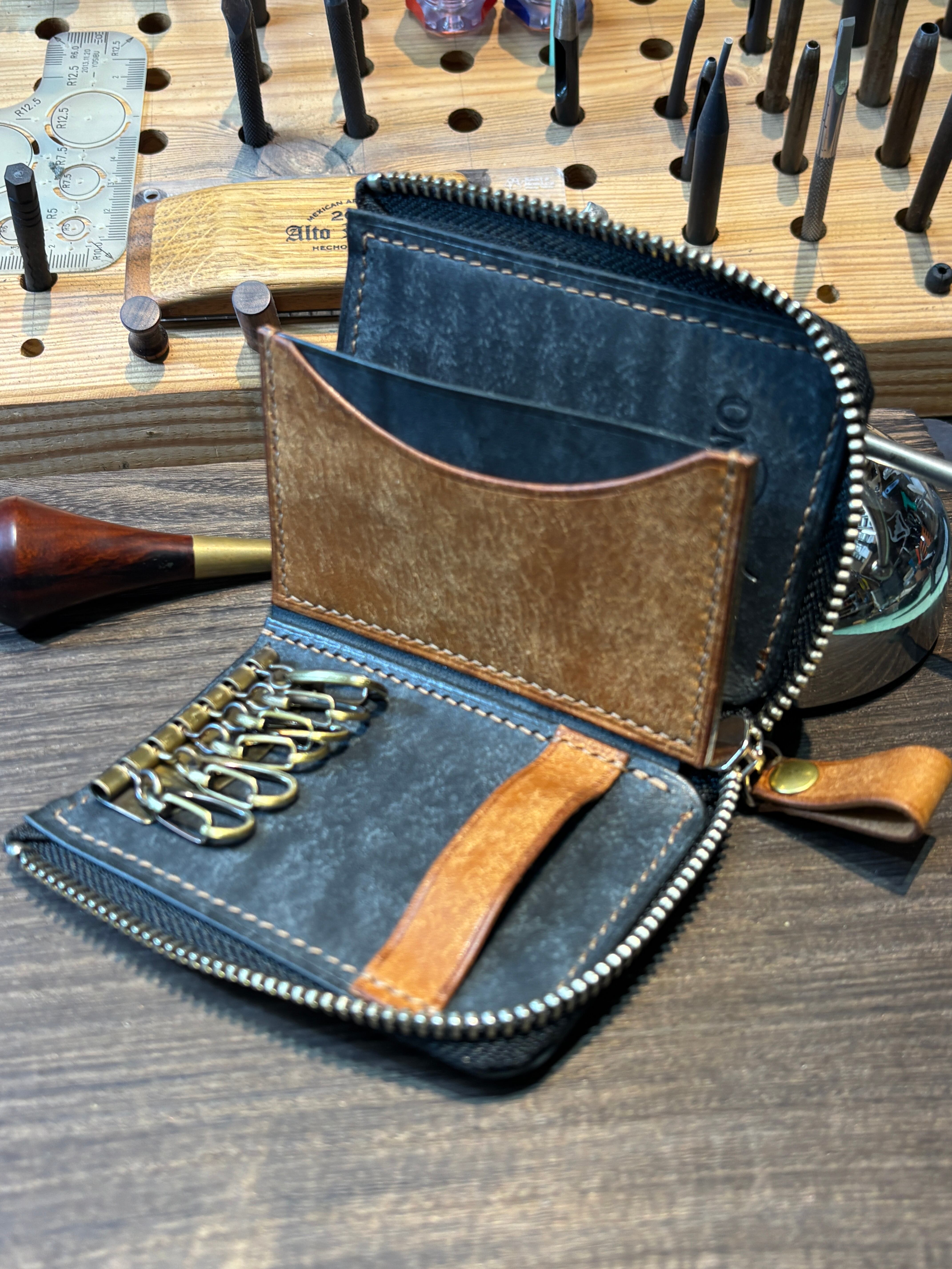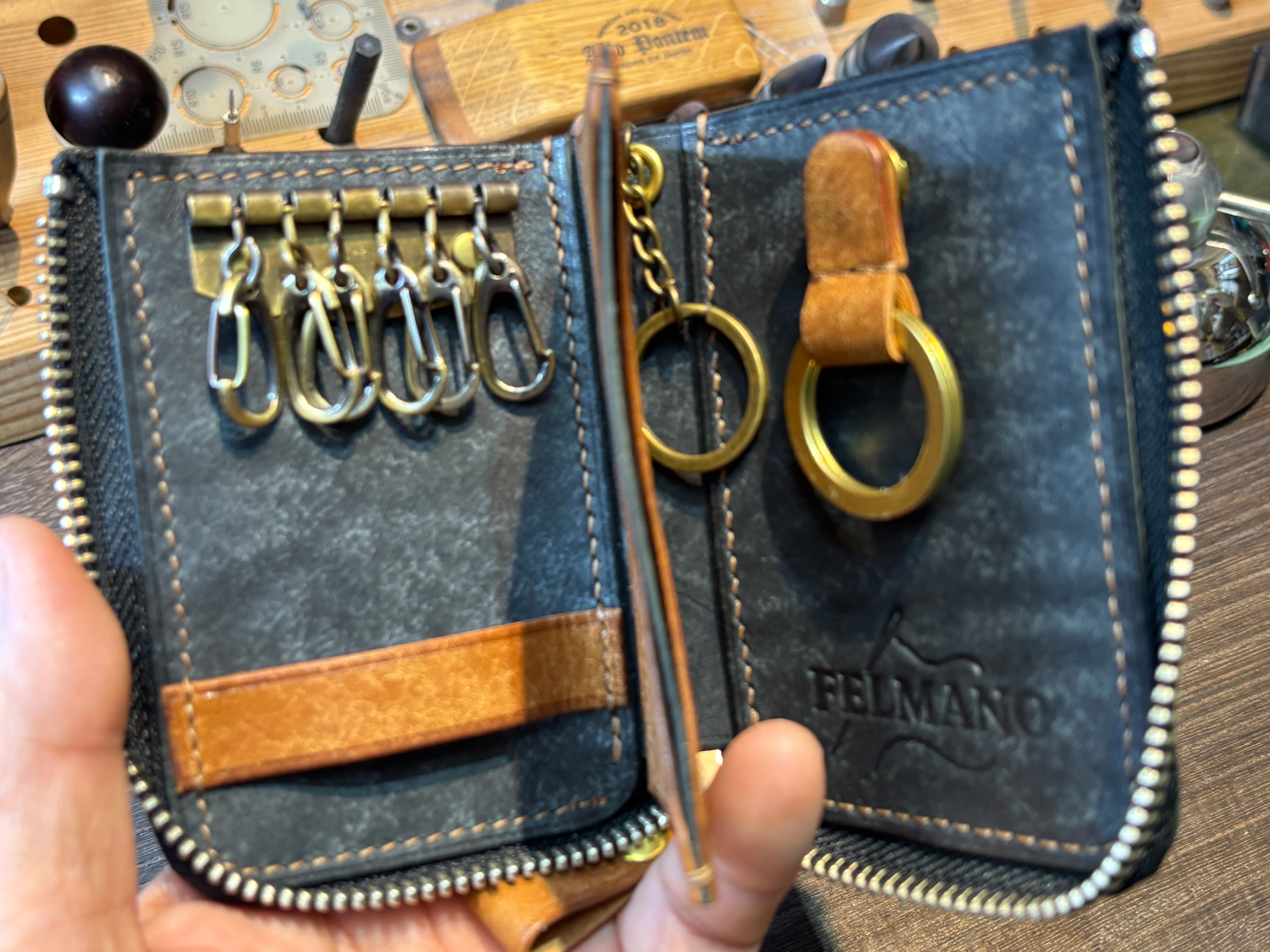 革の自然な風合いを生かしつつ、しっとりとした手触りが楽しめるキーケースとなりました。