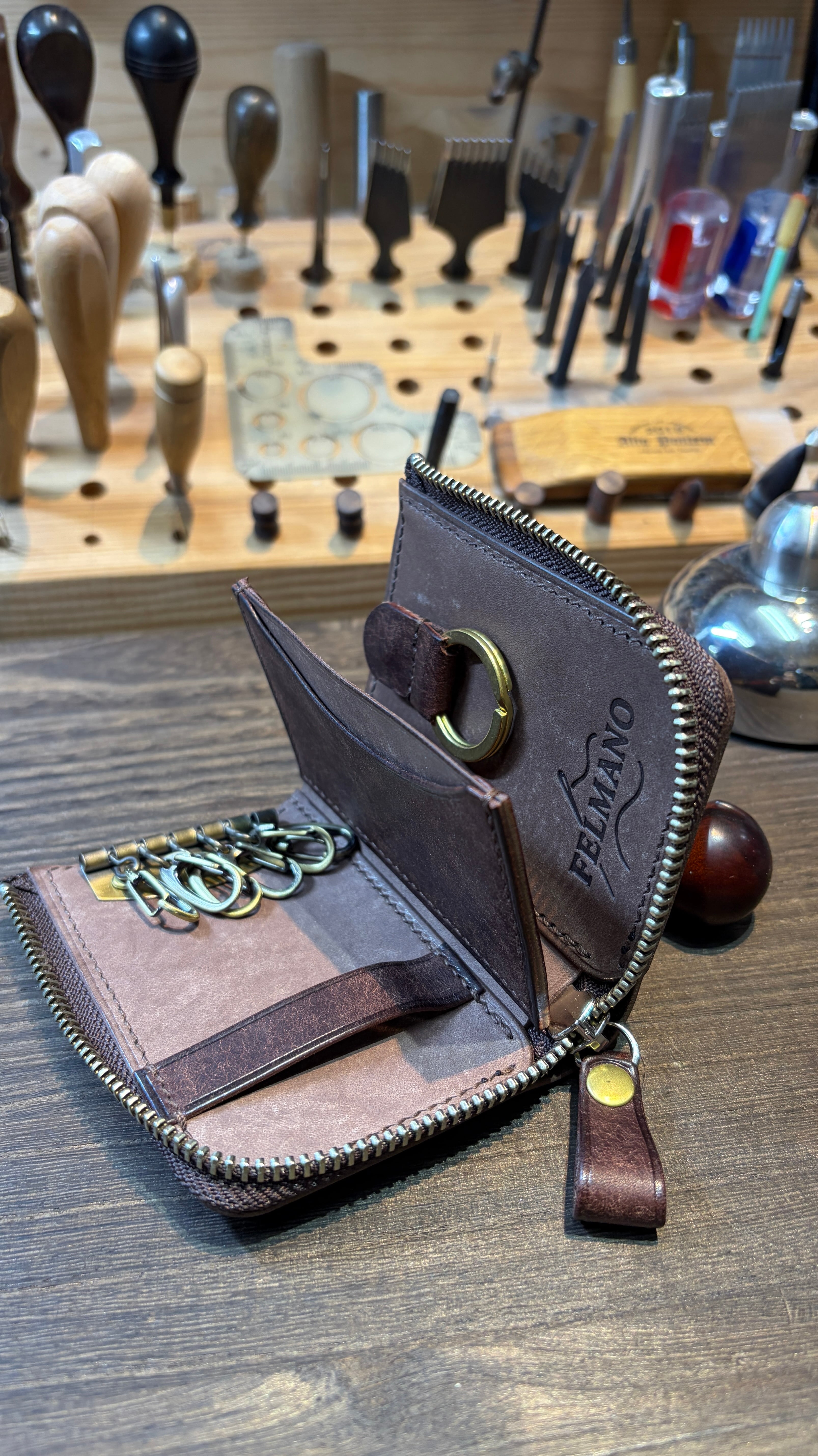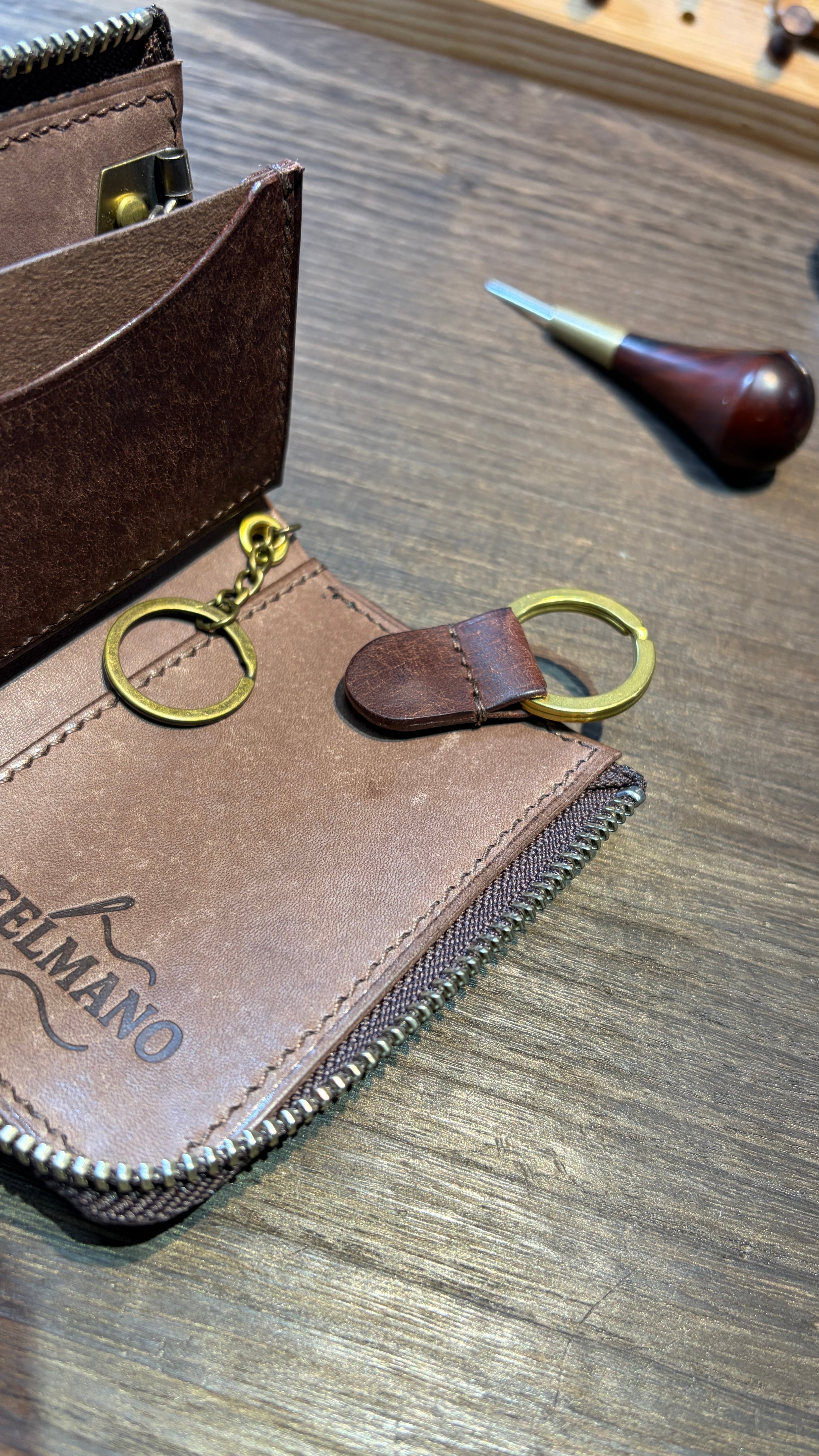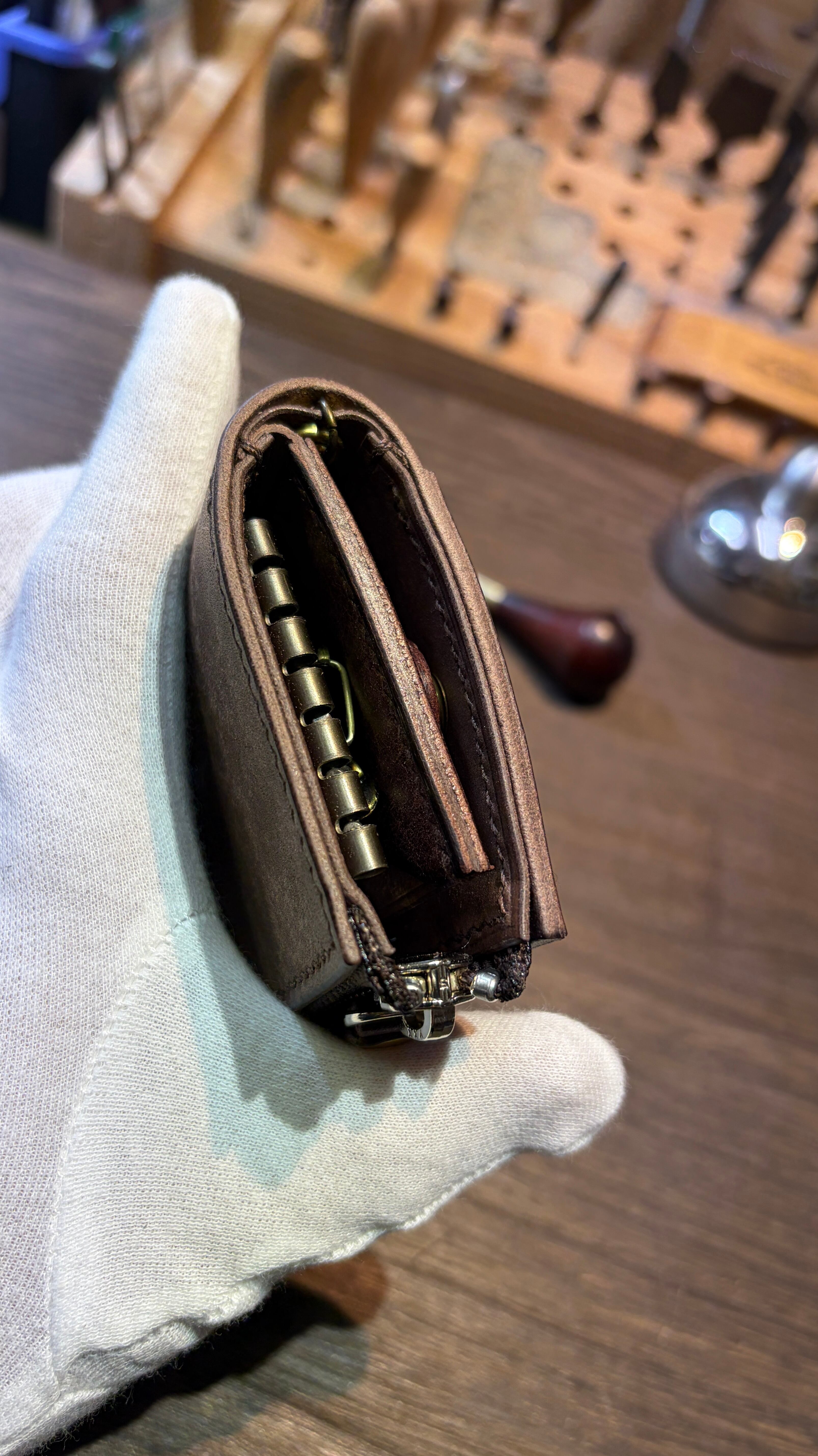 革の自然な風合いを生かしつつ、しっとりとした手触りが楽しめるキーケースとなりました。