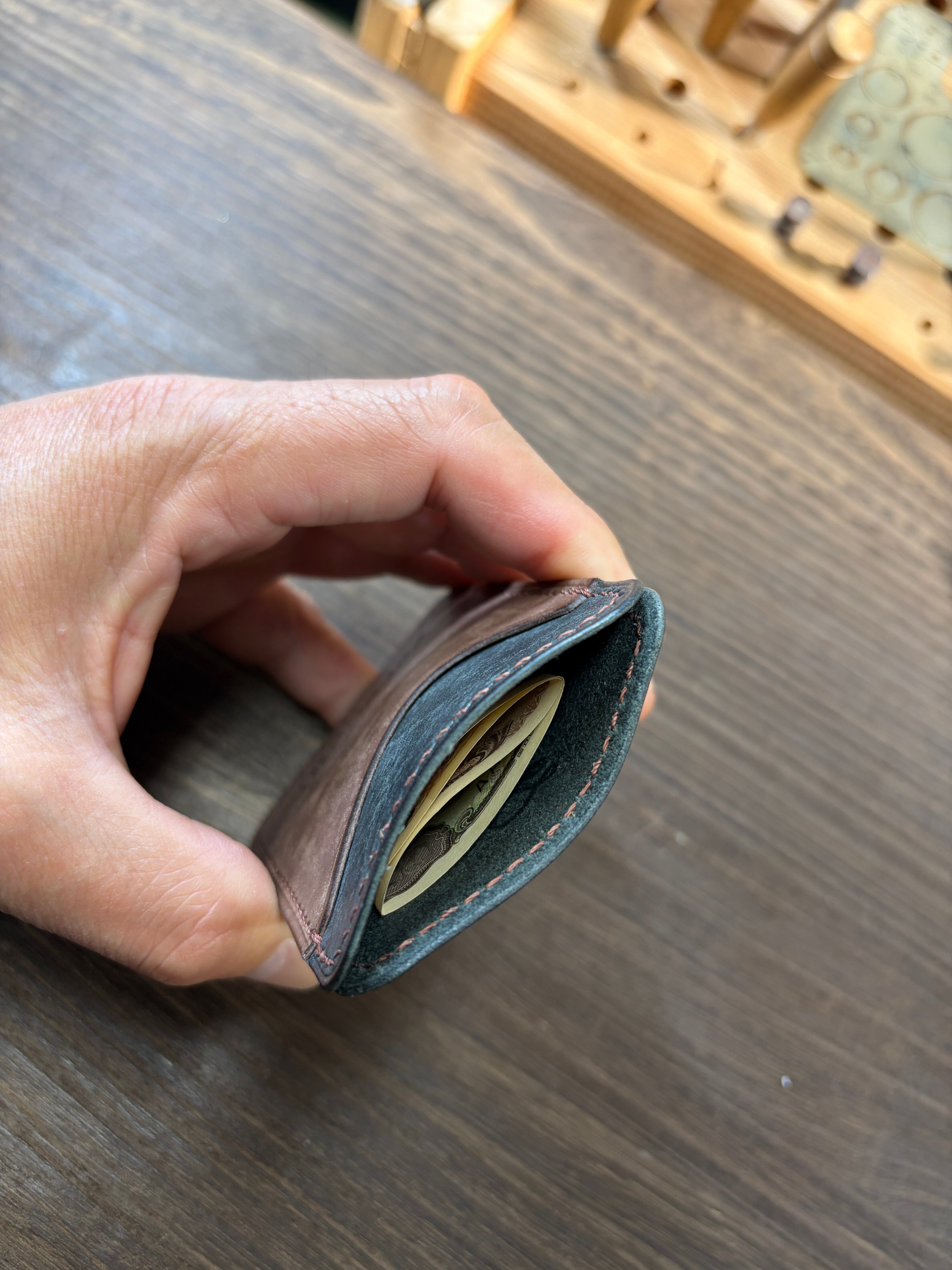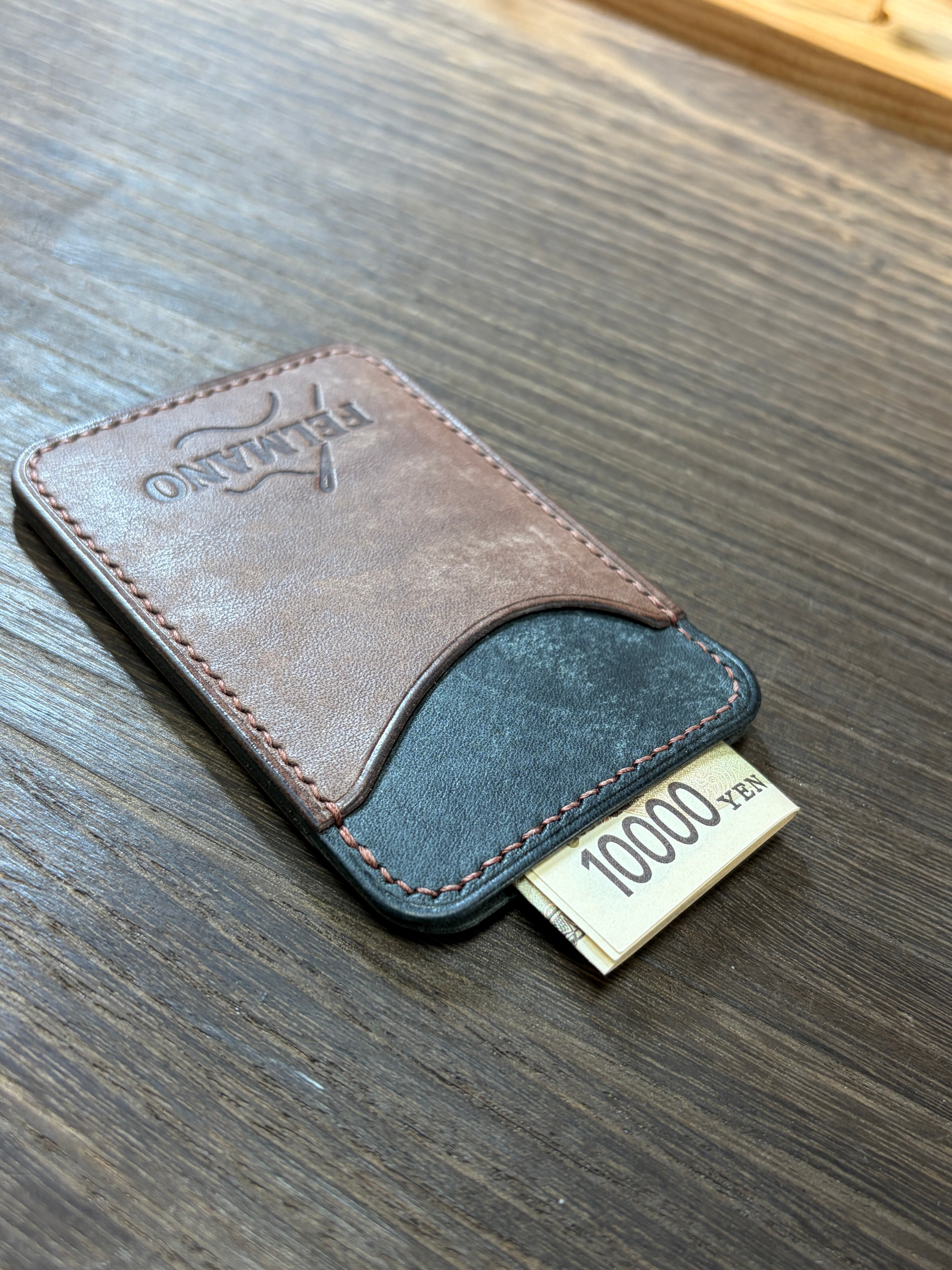 ここには予備の名刺を入れたり、画像のように万が一のためのお札を忍ばせておいたりすることが可能です。「これ一つで外出できる」身軽さは、一度体験すると手放せなくなる快適さです。