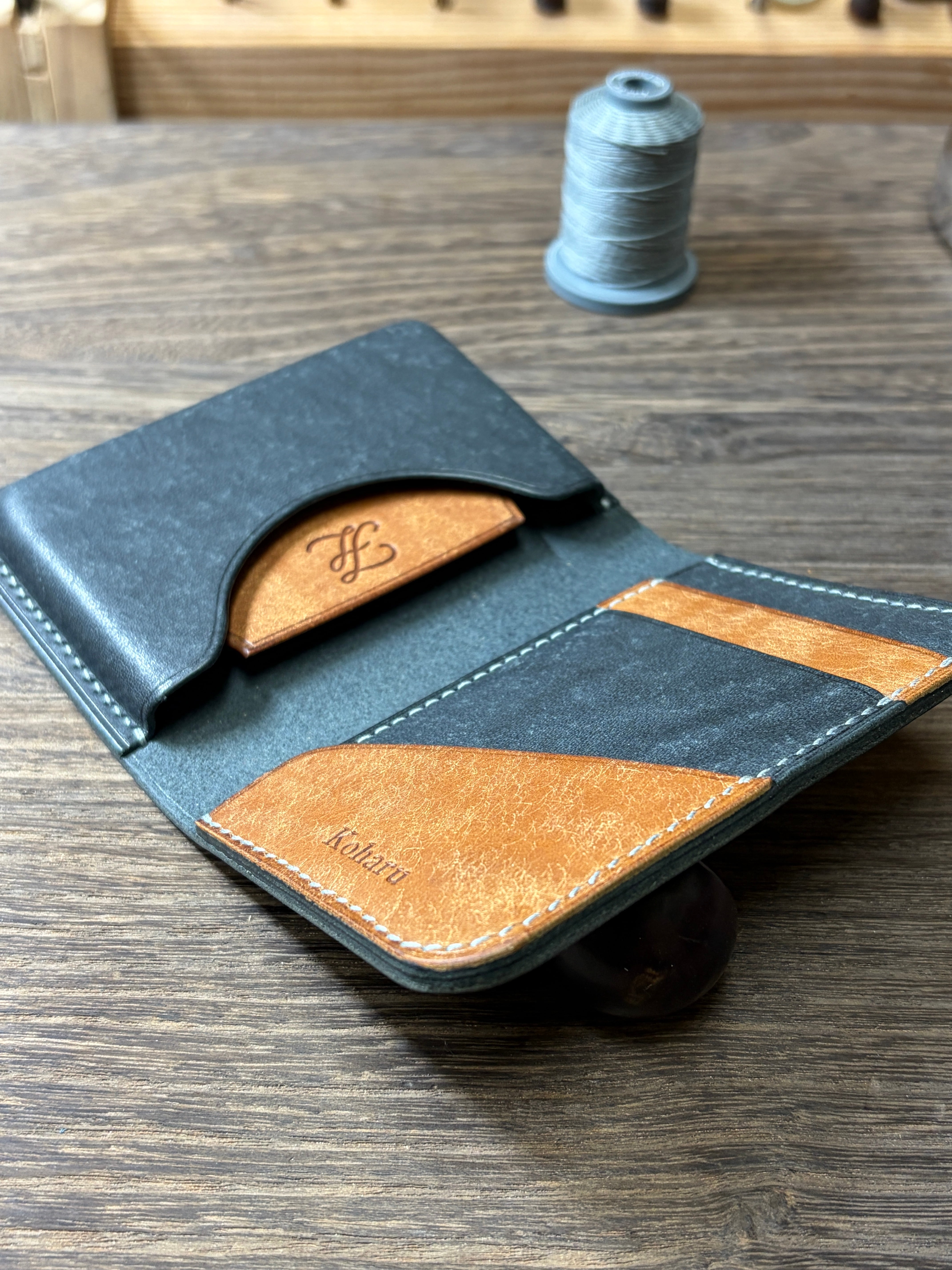 また、ステッチはmeisiのミスティグレーの手縫い糸を使用して一針一針手縫いで仕立てております。