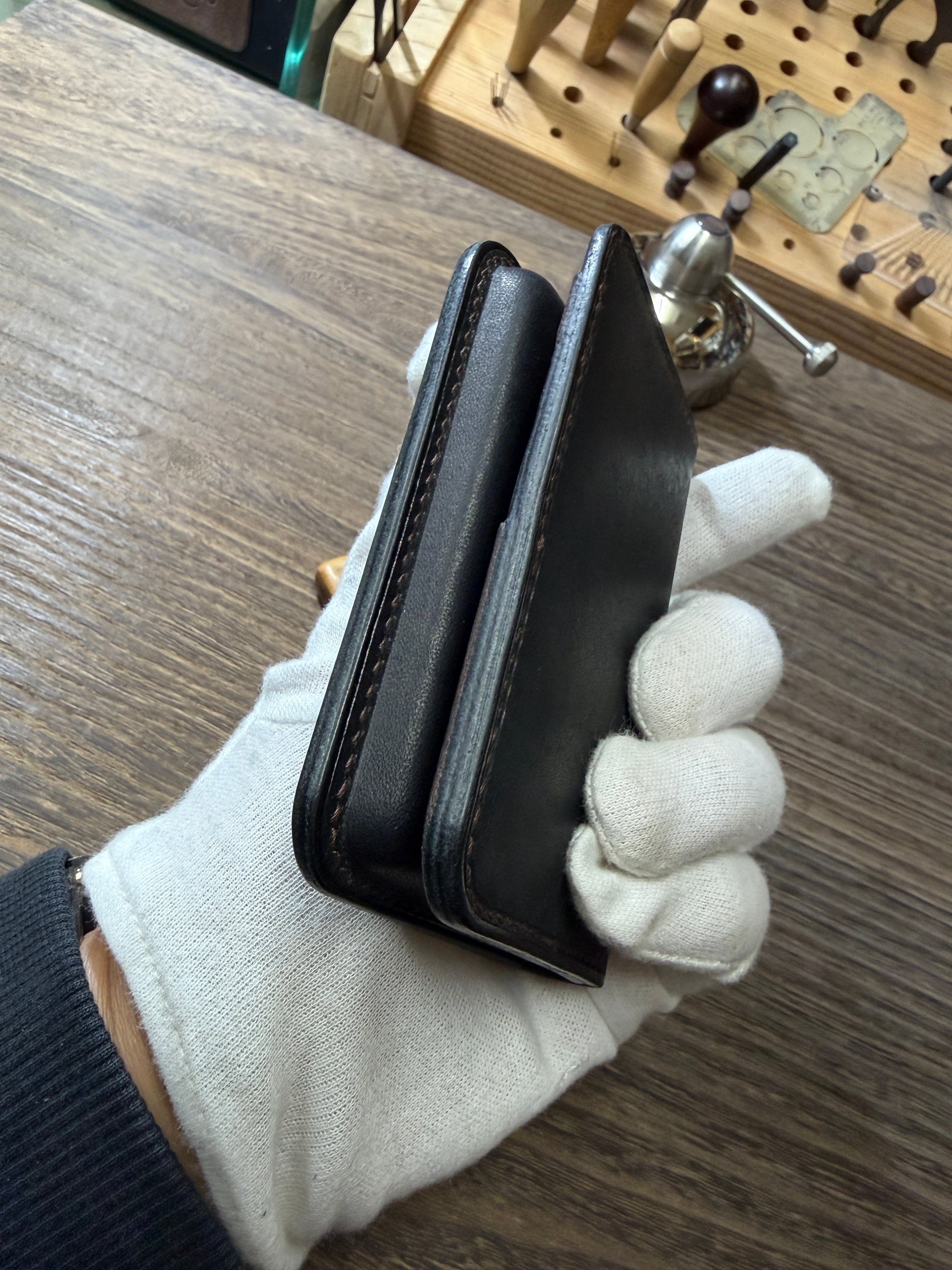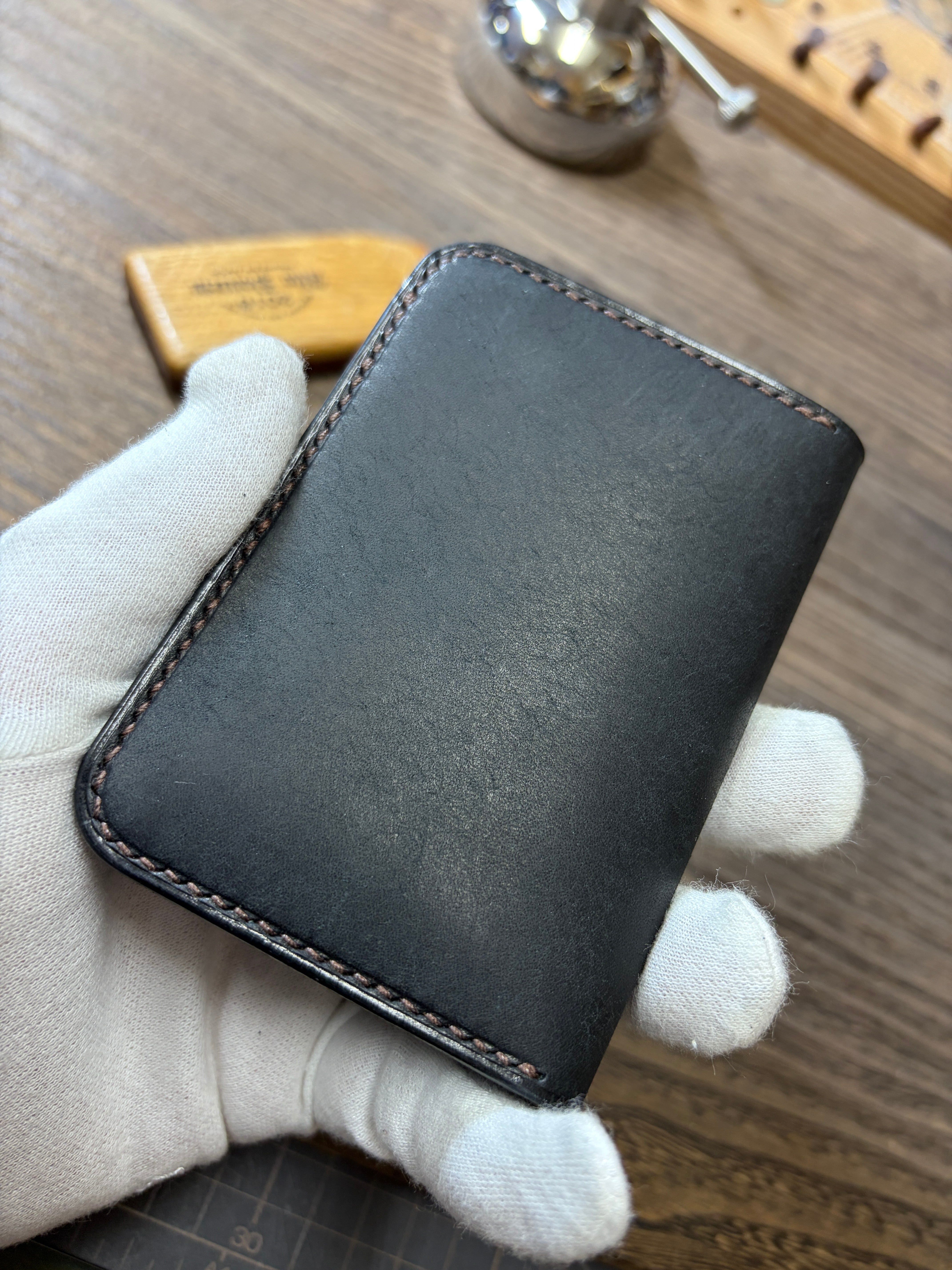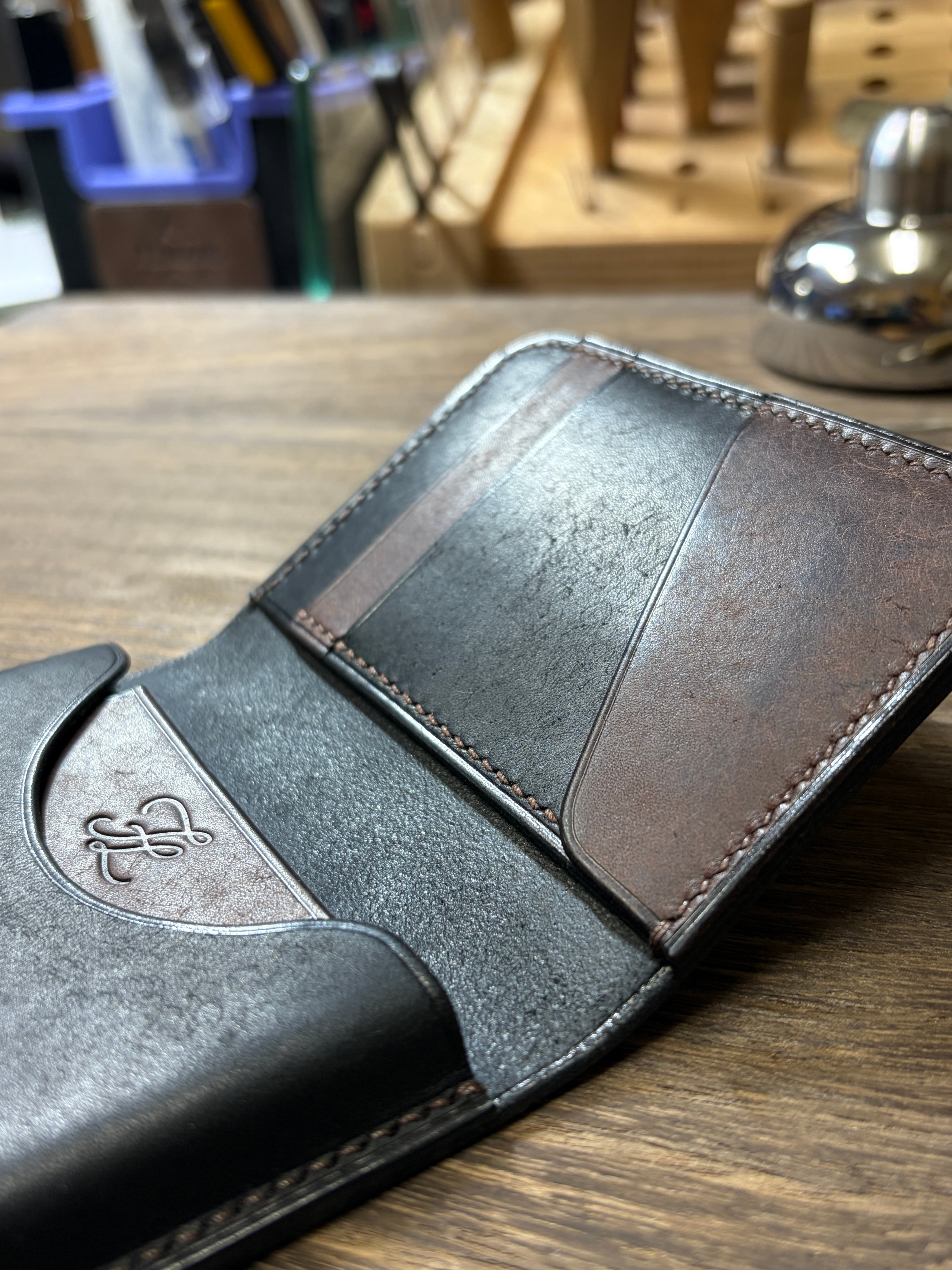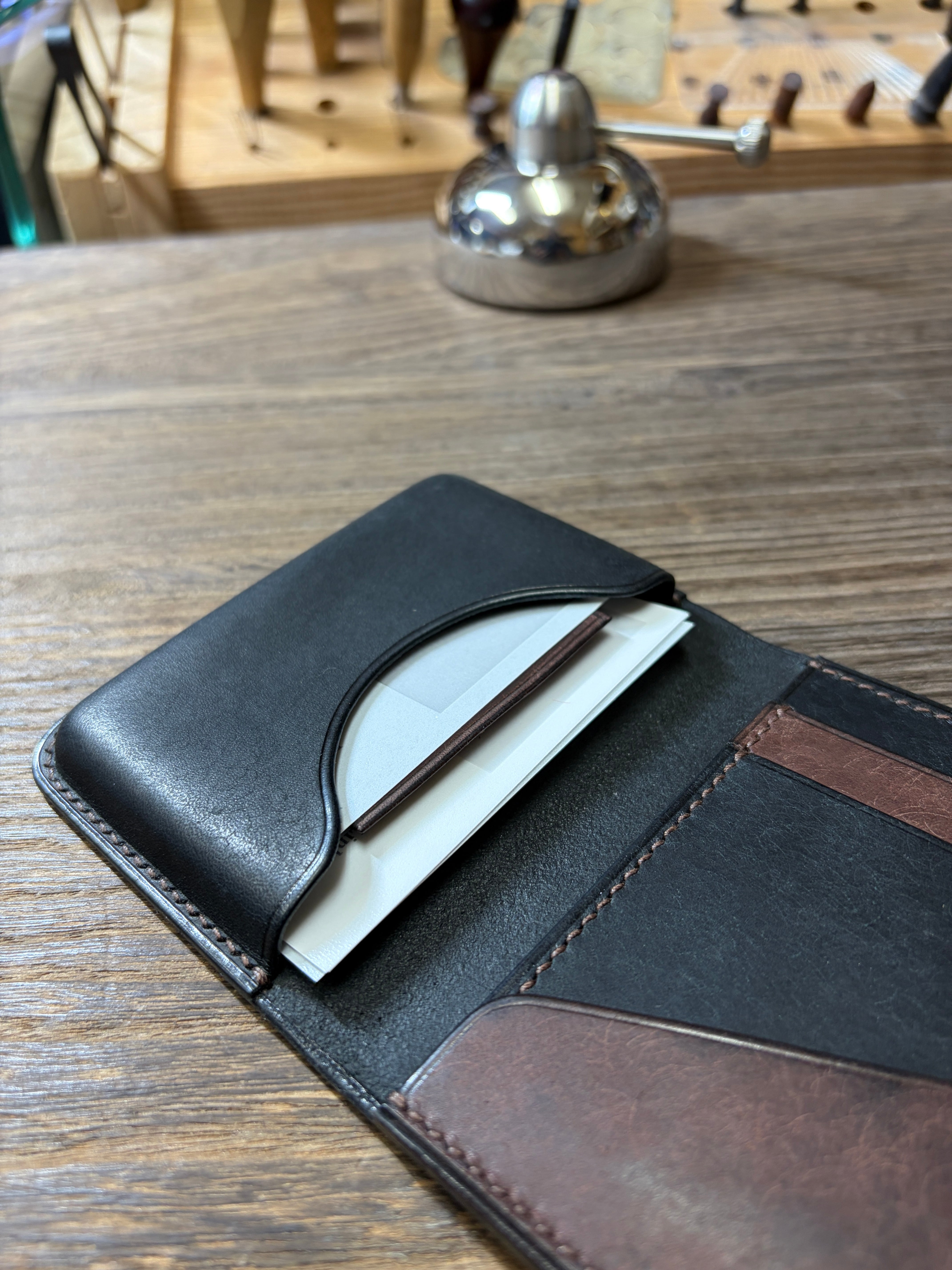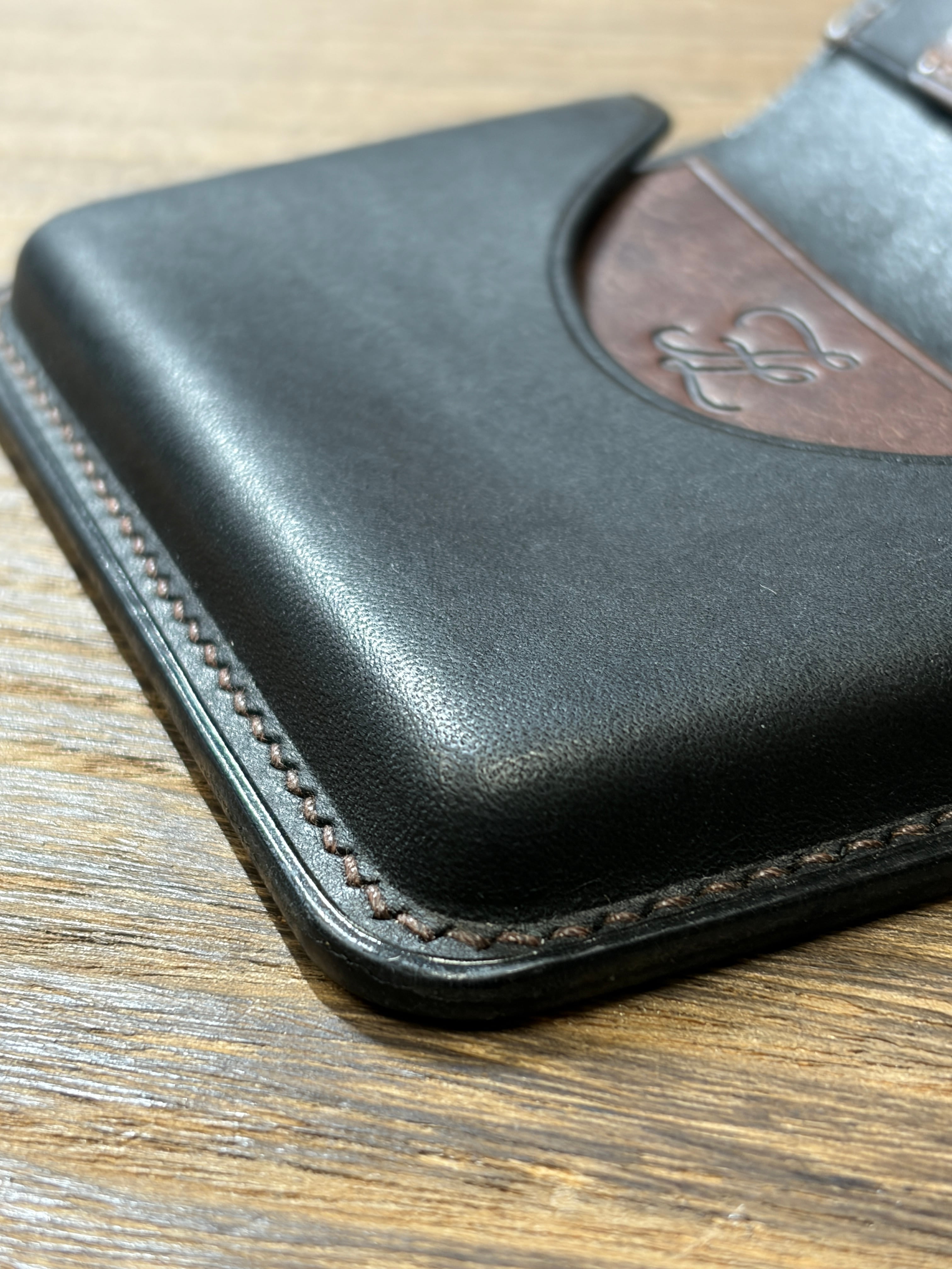 本革 手縫い名刺入れ バイカラー【FELMANO】カードケース black×darkbrown 経年変化 ハンドメイド