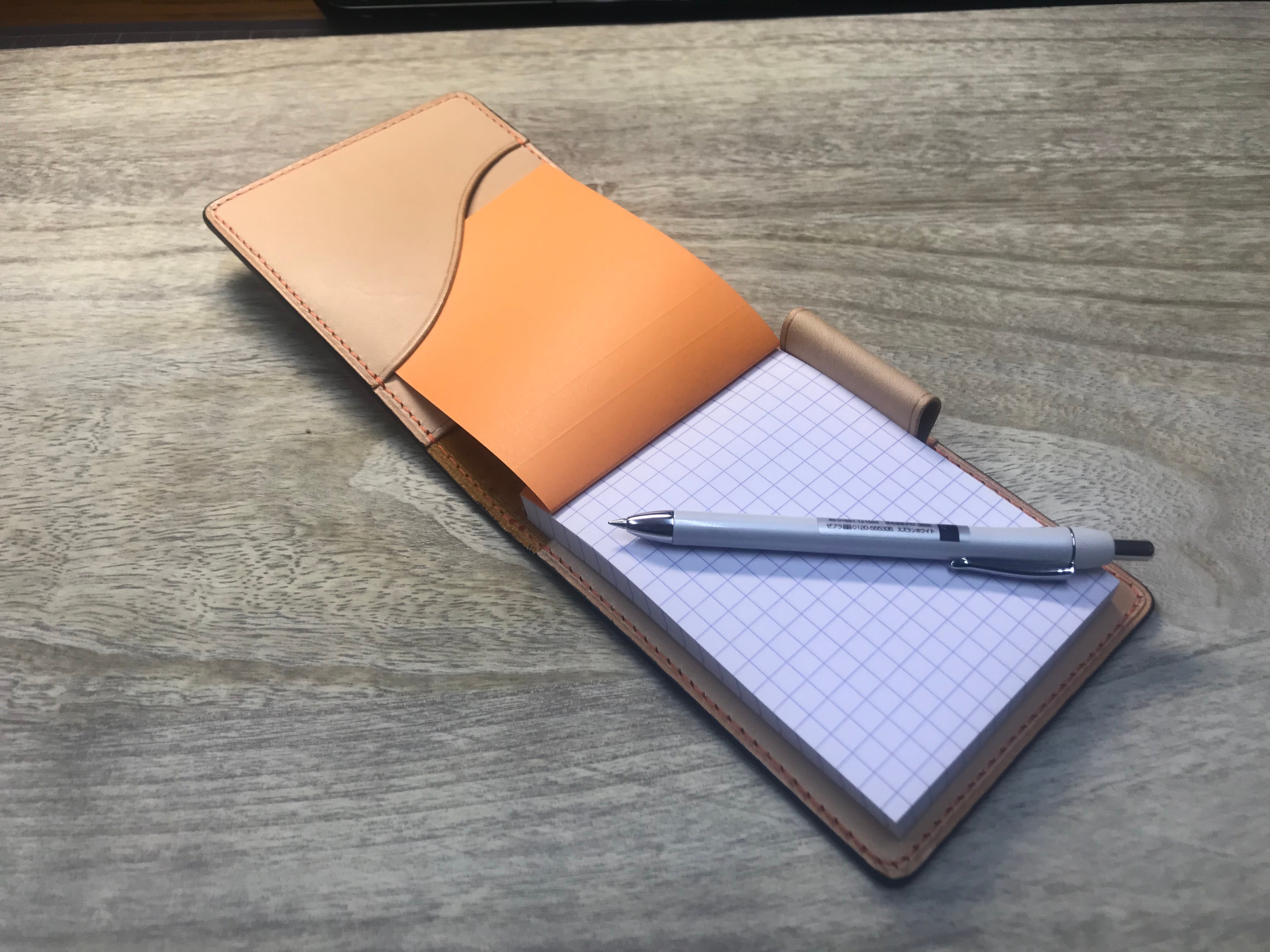 そのRHODIA №11のカバーを高級なイタリアンレザーにて製作いたしました。