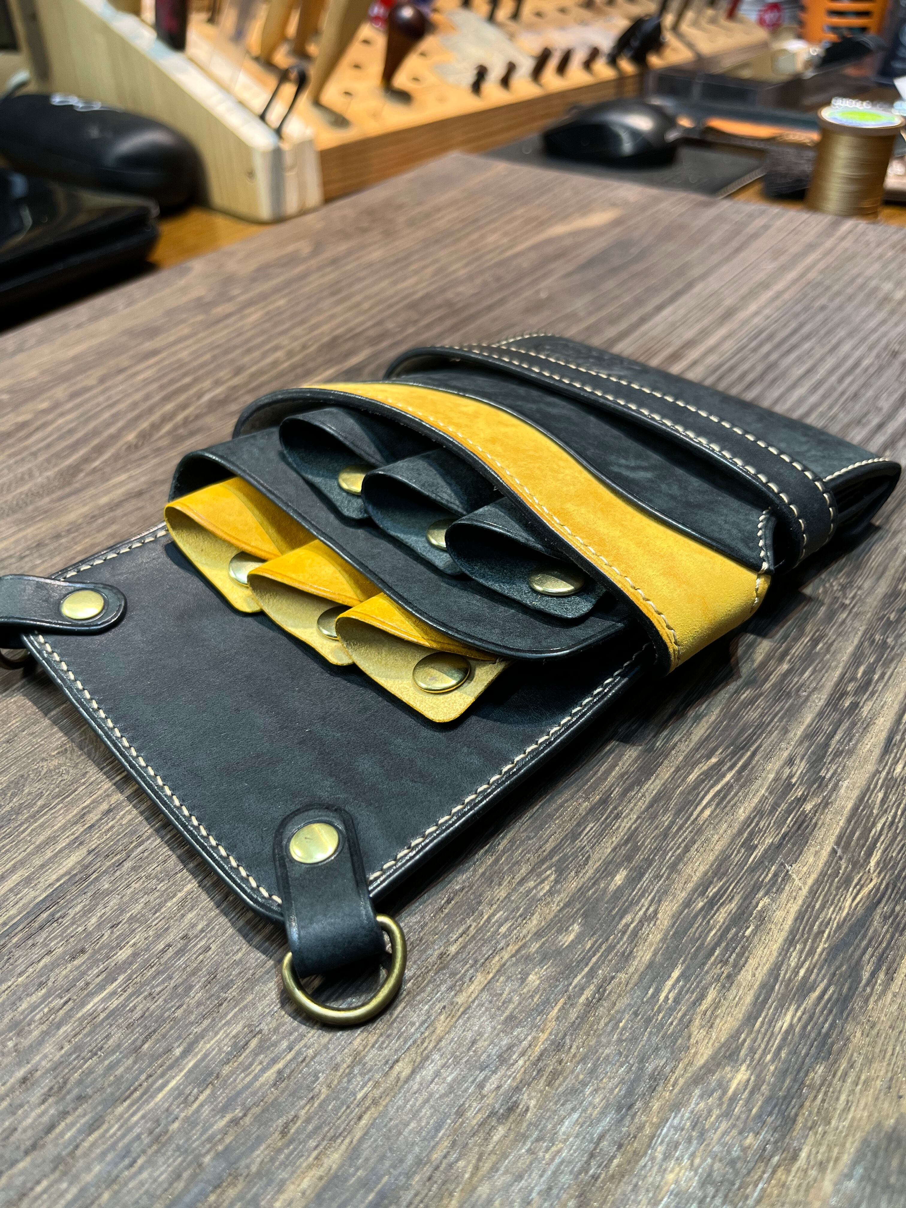 イタリアのタンナー、IL PONTE社のMAYAを使用した6丁差しシザーケースです。