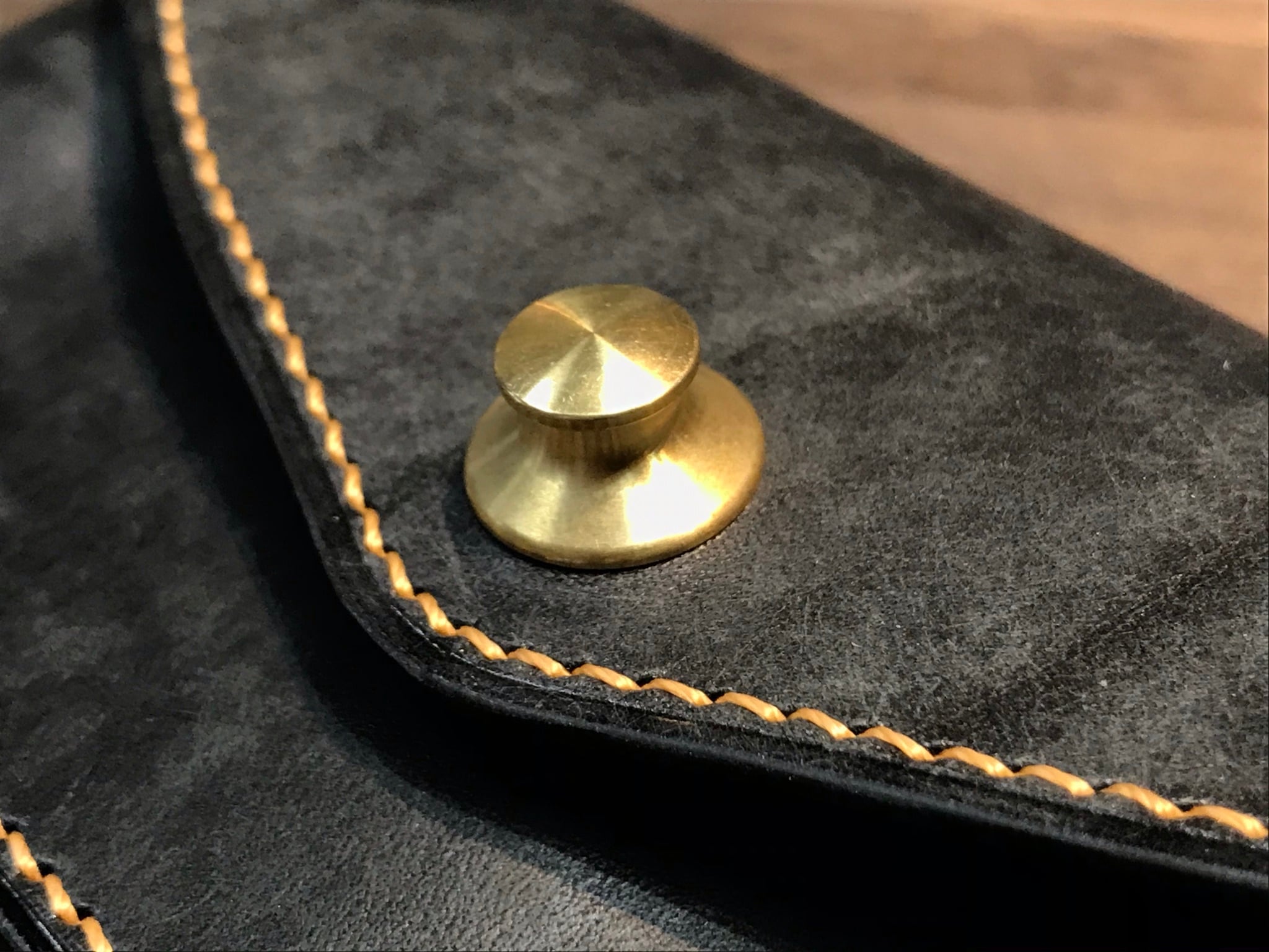 軽く引っ張るだけで開閉できる真鍮製のスナップロックを採用。