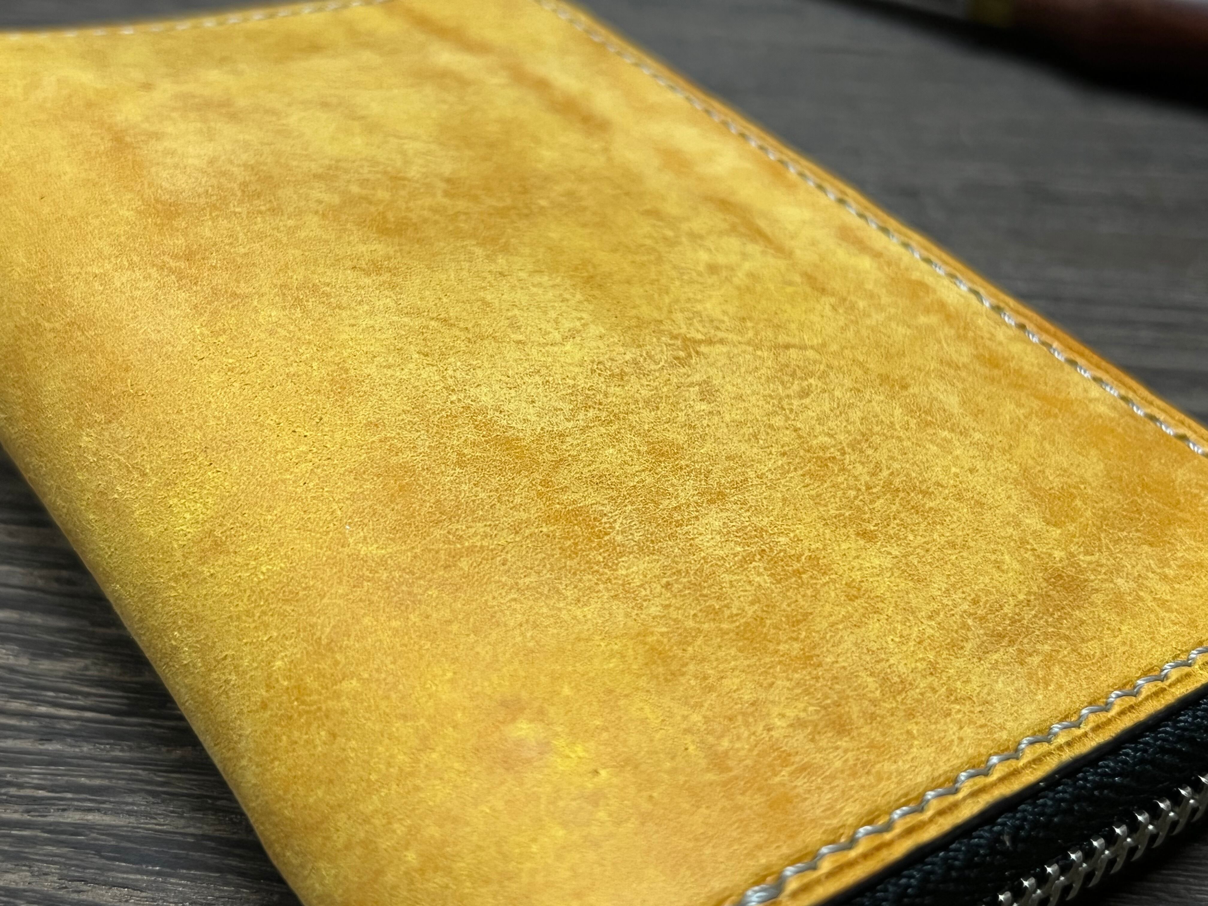 イタリアのタンナー、IL PONTE社のMAYAという革を外装に使用したラウンドファスナーウォレットです。