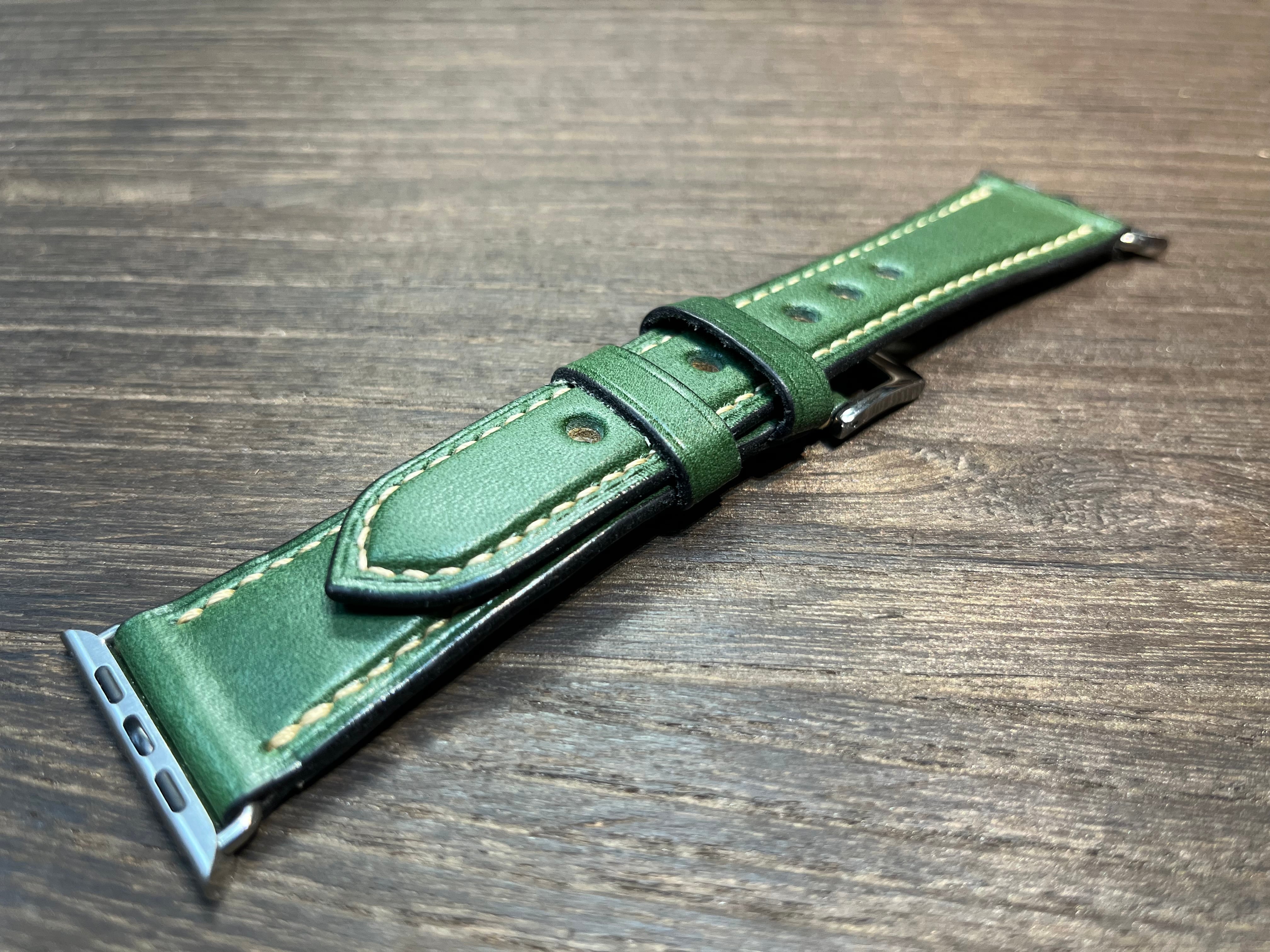 日本最高峰とも呼ばれる栃木レザーで製作したApple Watch44mmサイズ用のウォッチベルトです。