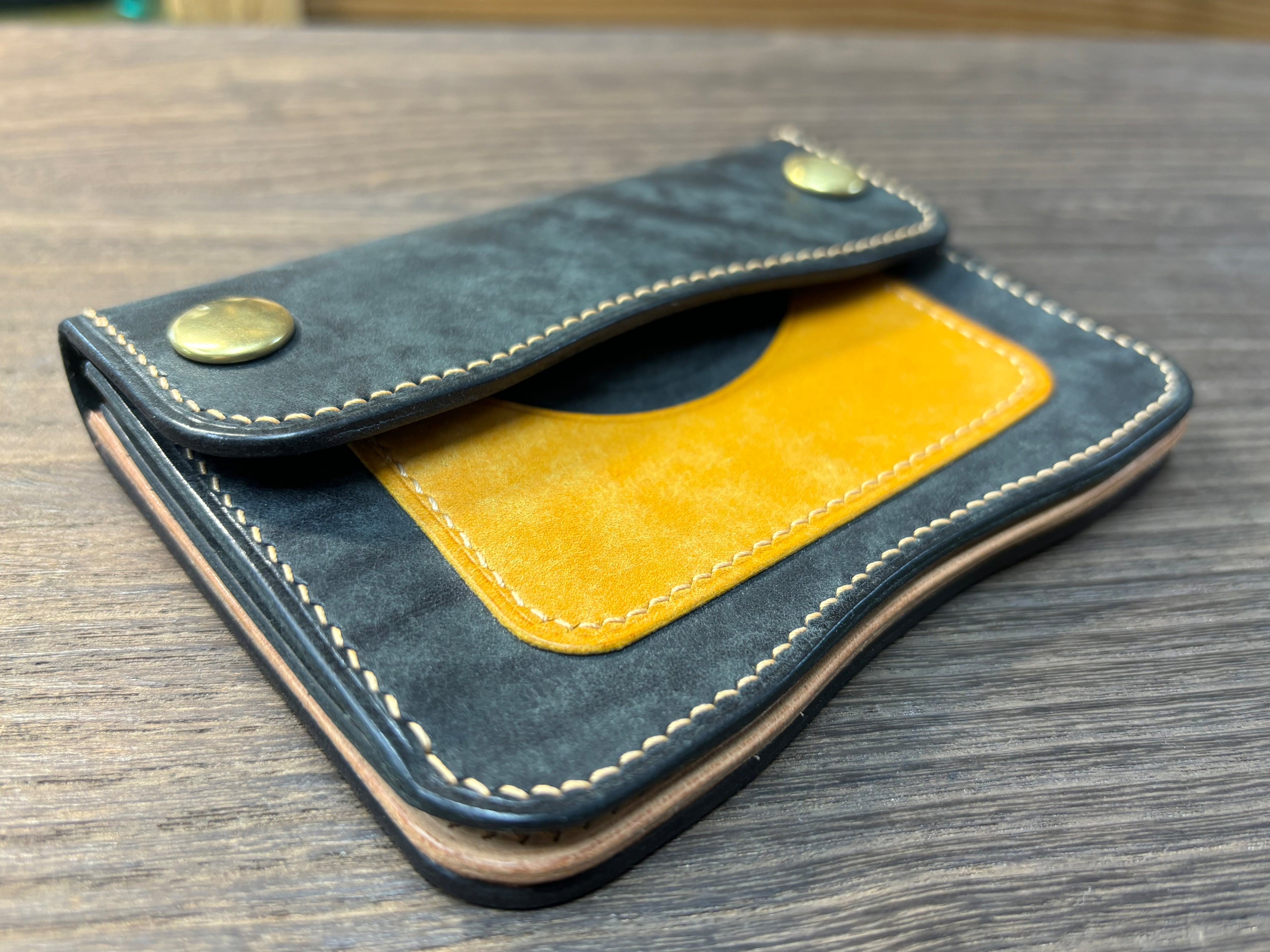 イタリアのタンナー、IL PONTE社のMAYAという革を外装に使用した小さいサイズのトラッカーウォレットです。