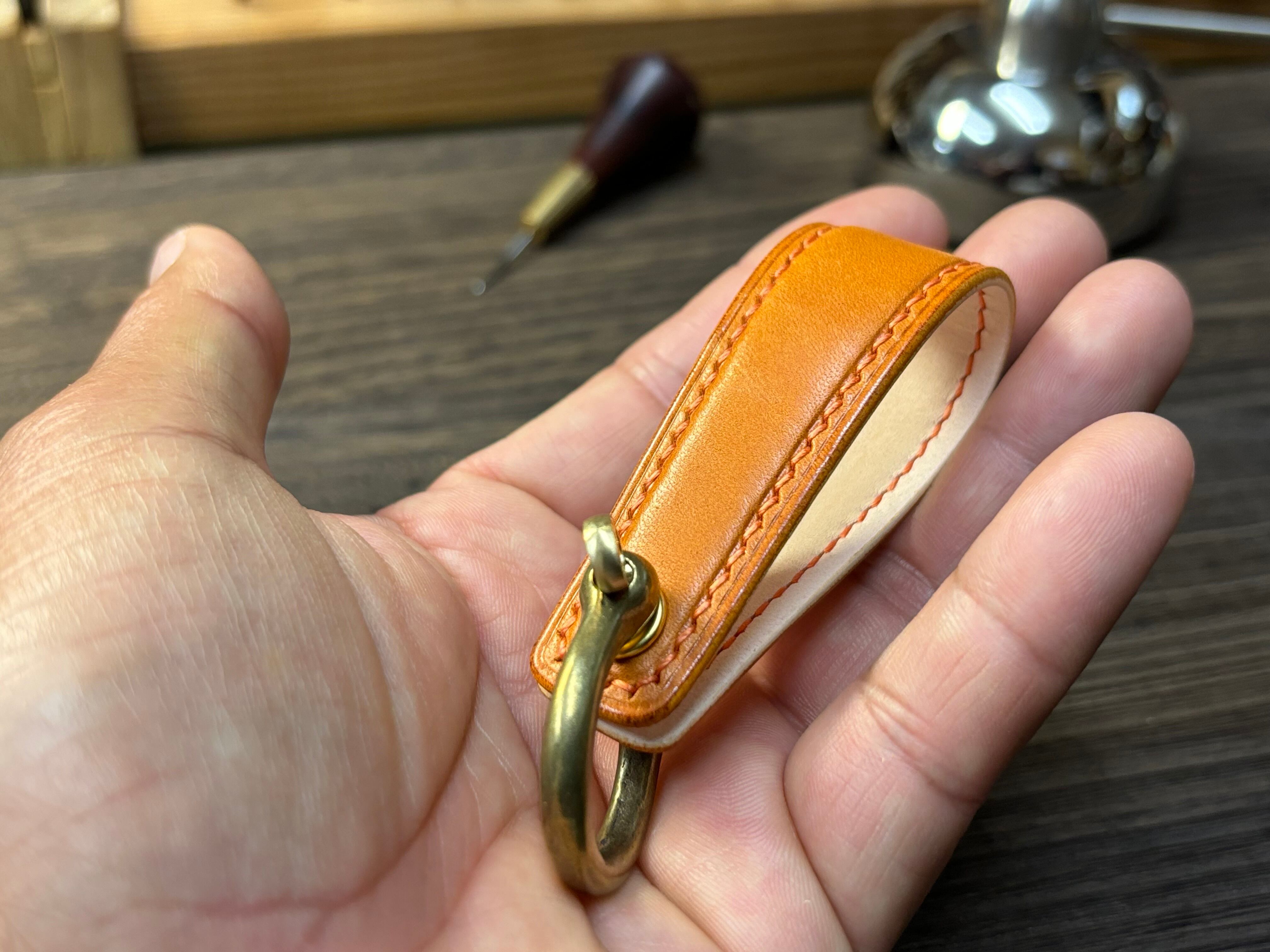 革の手縫い部分に段を設け、立体的な加工を施すことで、見た目のクォリティを上げると共に、縫い糸の擦れや切れを防ぎ、長く使って頂けるアイテムに仕上げております。